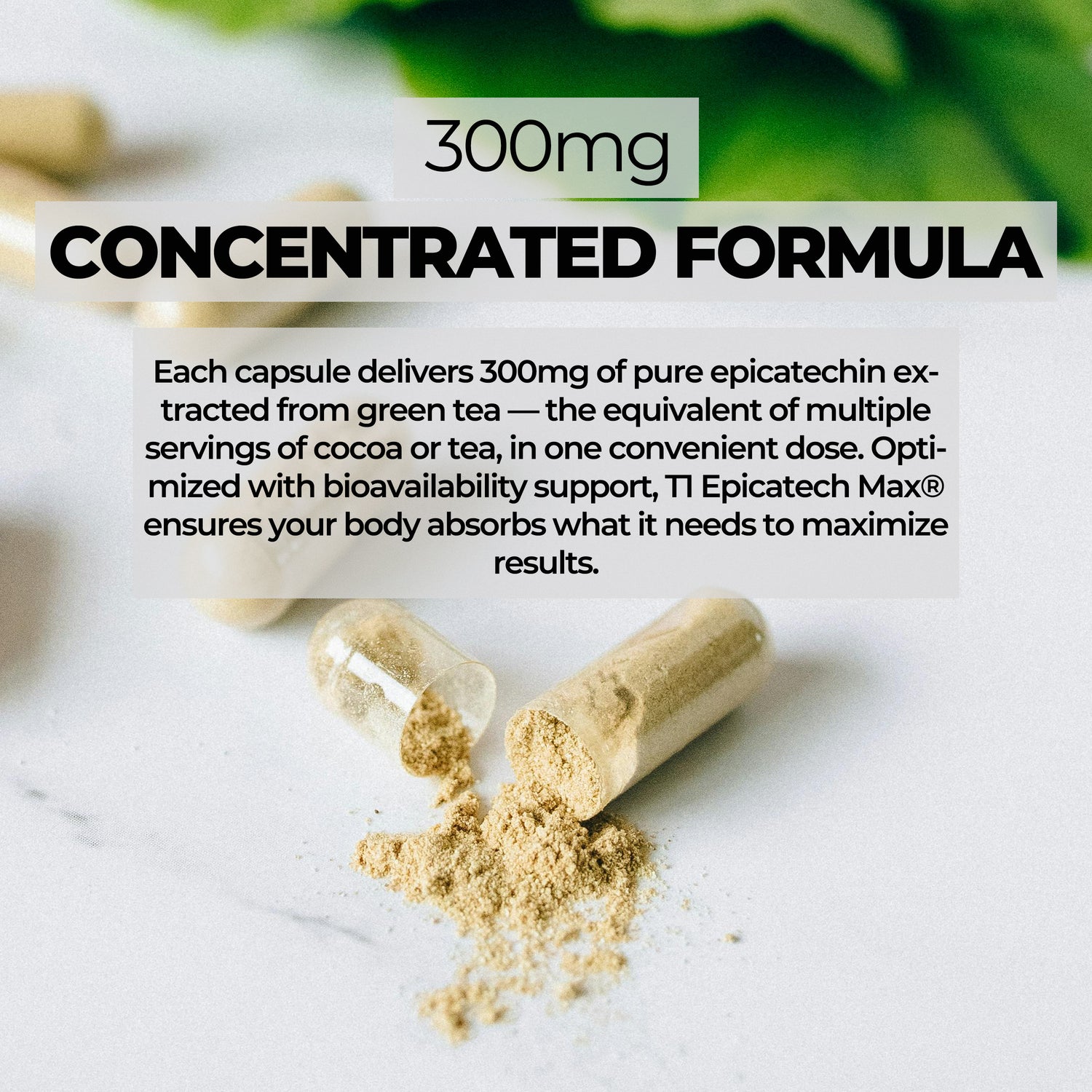 T1 Epicatech Max® is a next-generation muscle growth supplement powered by epicatechin — a natural compound found in green tea and cacao. Clinically studied for its ability to inhibit myostatin, T1 Epicatech Max® helps unlock your genetic potential for greater strength, lean muscle, and performance.